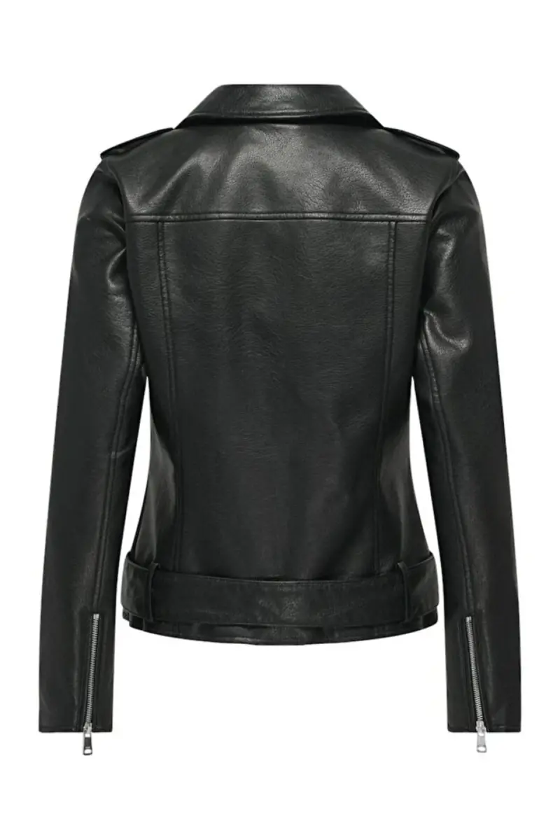 ONLMILLE 15357332 Siyah Kadın Deri Ceket-BLACK/SİYAH