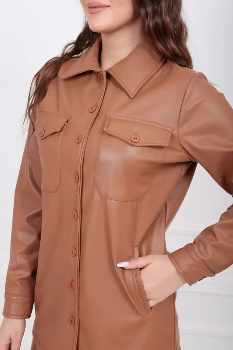Рубашка кожаная с U-образным вырезом и пуговицами спереди, с карманами Gml33163, сочетающая в себе элегантность и тренд, станет незаменимой вещью в вашем гардеробе! Эта кожаная рубашка, разработанная под оригинальным дизайном бренда Sense, является одной из самых ярких вещей осенне-зимнего сезона 2021 года. Материал из искусственной кожи придает ей элегантный и современный вид, а декоративные строчки добавляют неповторимости. Благодаря длинным рукавам и стандартному крою эта рубашка удобна в носке и понравится женщинам всех возрастов. Эту рубашку можно с легкостью использовать в повседневных образах или на особых мероприятиях, она поможет вам подчеркнуть свой стиль. Эта рубашка представлена в размере 36/S на модели, а также предлагает альтернативу для любого типа фигуры с различными вариантами размеров. Вес: 55 кг / Рост: 175 см, Обхват груди: 88 см / Обхват талии: 62 см / Обхват бедер: 89 см. Положение манекена на модели даст вам представление о том, как изделие будет сидеть на вас. Карманы спереди обеспечивают функциональность, а застежка на пуговицах позволяет легко надевать и снимать рубашку. Эта кожаная рубашка от Sense идеально подходит для женщин, которые ищут сочетание элегантности и комфорта. Если вы хотите отразить свой трендовый стиль, не жертвуя при этом комфортом, то эта рубашка именно для вас. Этот особенный предмет, который обязательно должен быть в вашем гардеробе, добавит вашему стилю новое измерение. Этот продукт, предлагаемый с гарантией бренда Sense, станет выбором тех, кто ищет сочетание качества и элегантности. Помните, что в этой кожаной рубашке особого дизайна вы будете привлекать к себе внимание в любой обстановке. Эта рубашка, в которой вы продемонстрируете свою элегантность и стиль, готова стать самой любимой вещью в вашем гардеробе.
