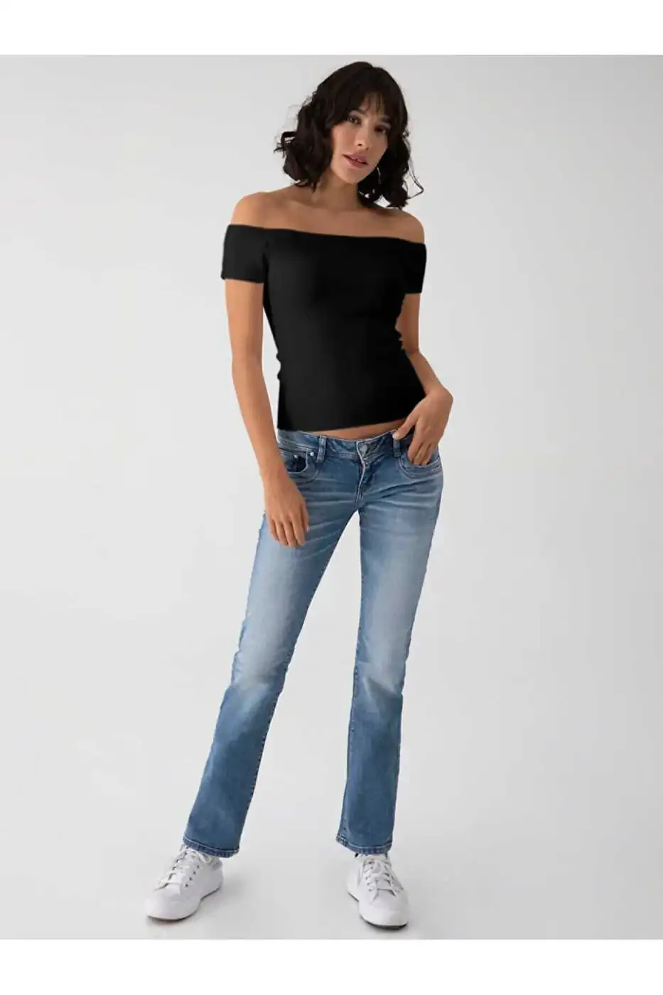 This black knit sweater, an indispensable part of your wardrobe, offers both stylish and comfortable look with its open shoulder design. Its soft texture and comfortable fit allow you to wear it comfortably all day long. This sweater, which can be combined with any type of pants, skirts and leggings, will help you reflect your style everywhere from everyday wear to special occasions.