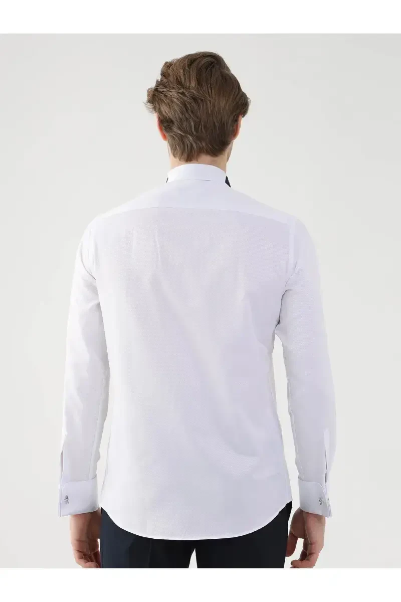 Nafislik va oqlanganlikni birlashtirgan Oq Erkaklar Slim Fit Naqshli Mandarine Yaka Ikki Qavatli Manjetli Uzun Yengli Ko'ylak sizning garderobingizning ajralmas qismi bo'lishga mo'ljallangan. Ayniqsa biznes sohasida nafislikni afzal ko'rgan erkaklar uchun ideal tanlov bo'lgan bu ko'ylak nozik chiziqli naqshi bilan zamonaviy ko'rinishga ega, mandarine yakasi va ikki qavatli manjet detallari esa klassik oqlanganlikni aks ettiradi.
