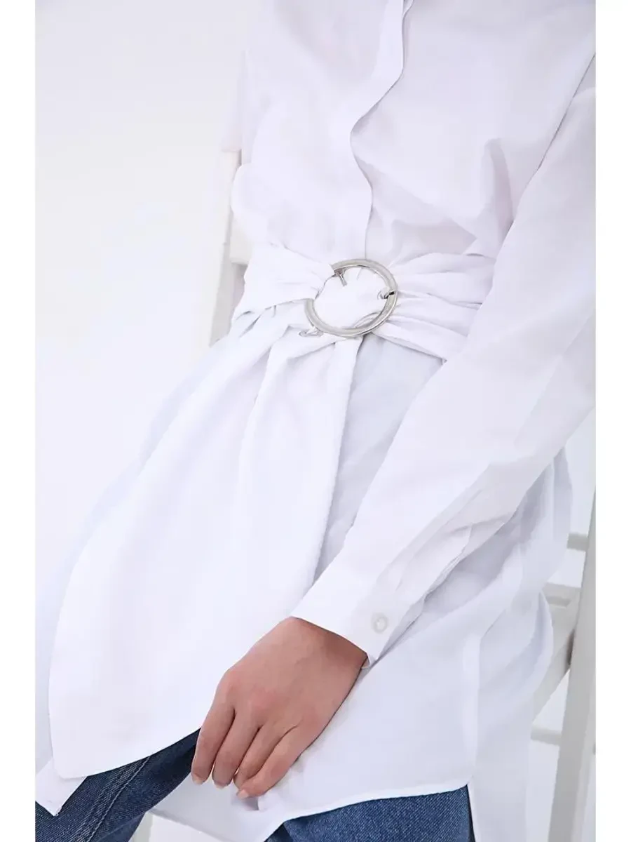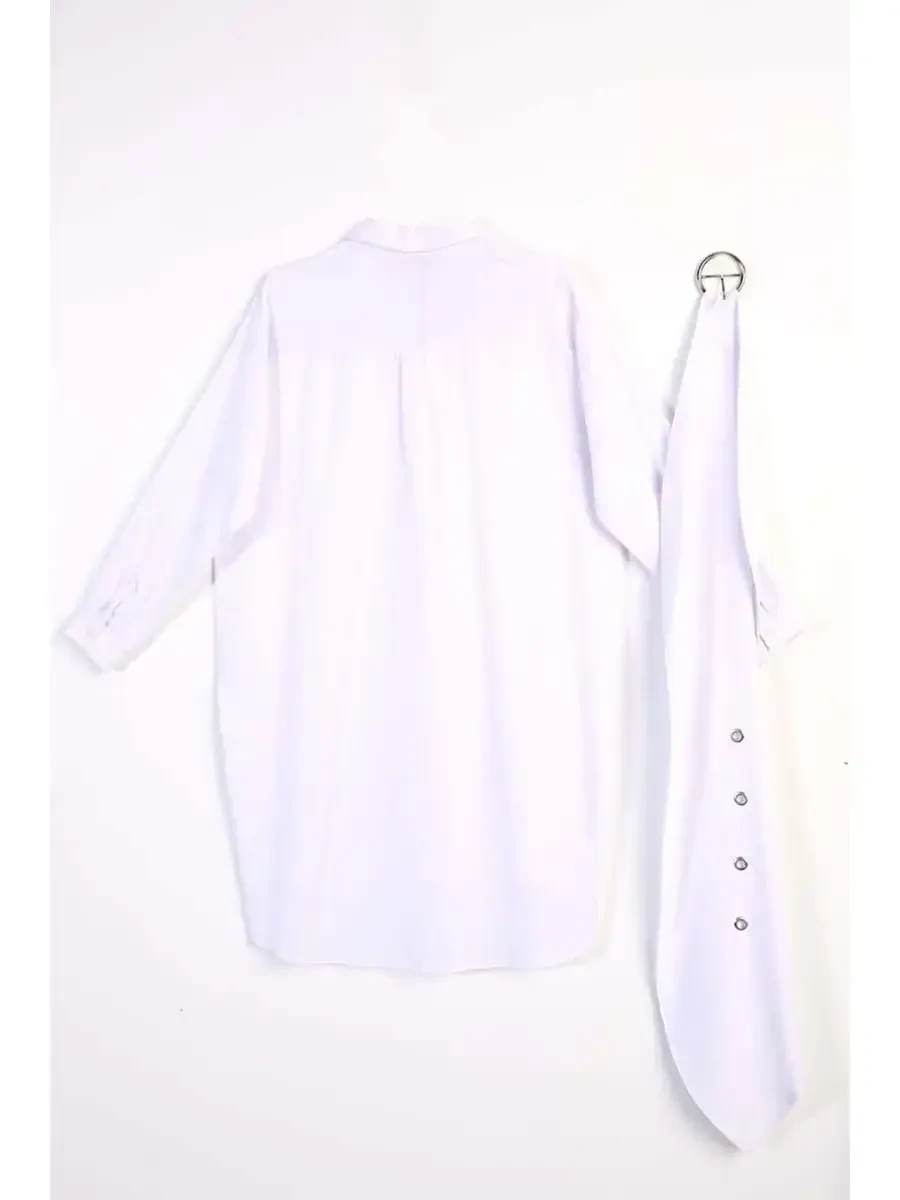 Oq kamarli bo'shashgan yengli ko'ylak tunikasi stil va qulaylikni birlashtirgan ajoyib tanlovdir. Kunlik hayotingizda, ish joyida yoki maxsus tadbirlarda qulay va zamonaviy ko'rinish hosil qilish uchun ideal tanlovdir.