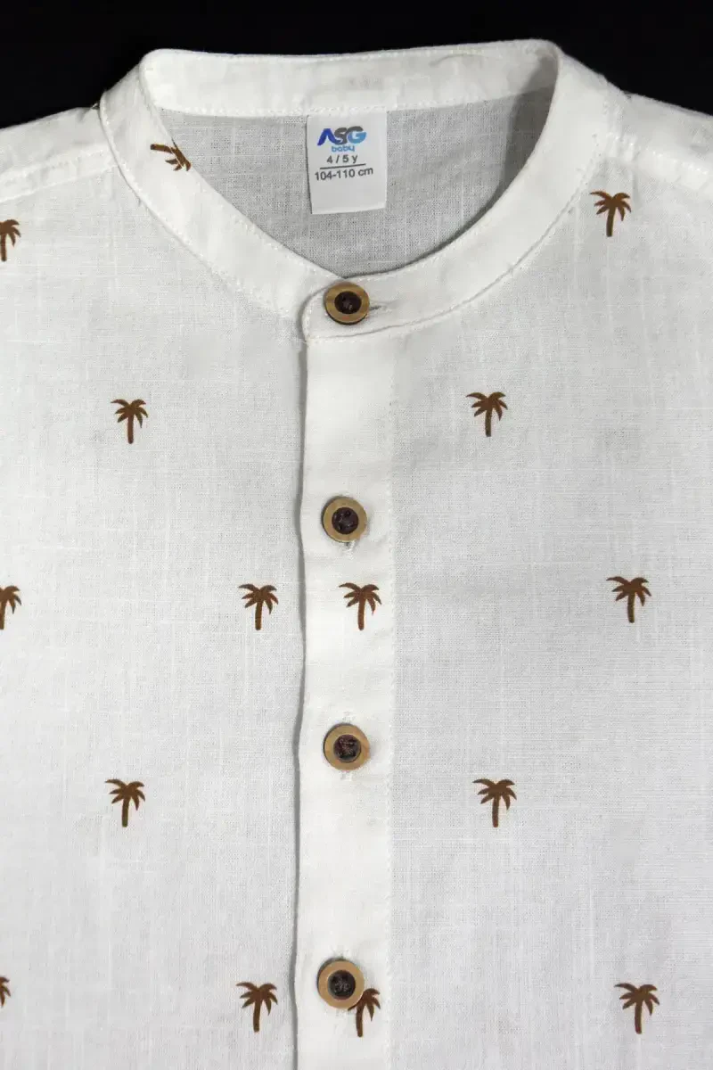Bebek Palmiye Desenli Poplin Ko'ylak | %100 Paxta, Qisqa Yengli, Tugmali | EKRU