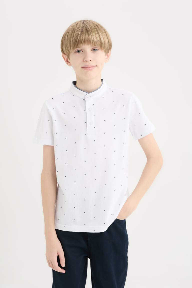 O'g'il bolalar uchun qisqa yengli klassik yoqa poloskasi, oq rang - zamonaviy va qulay