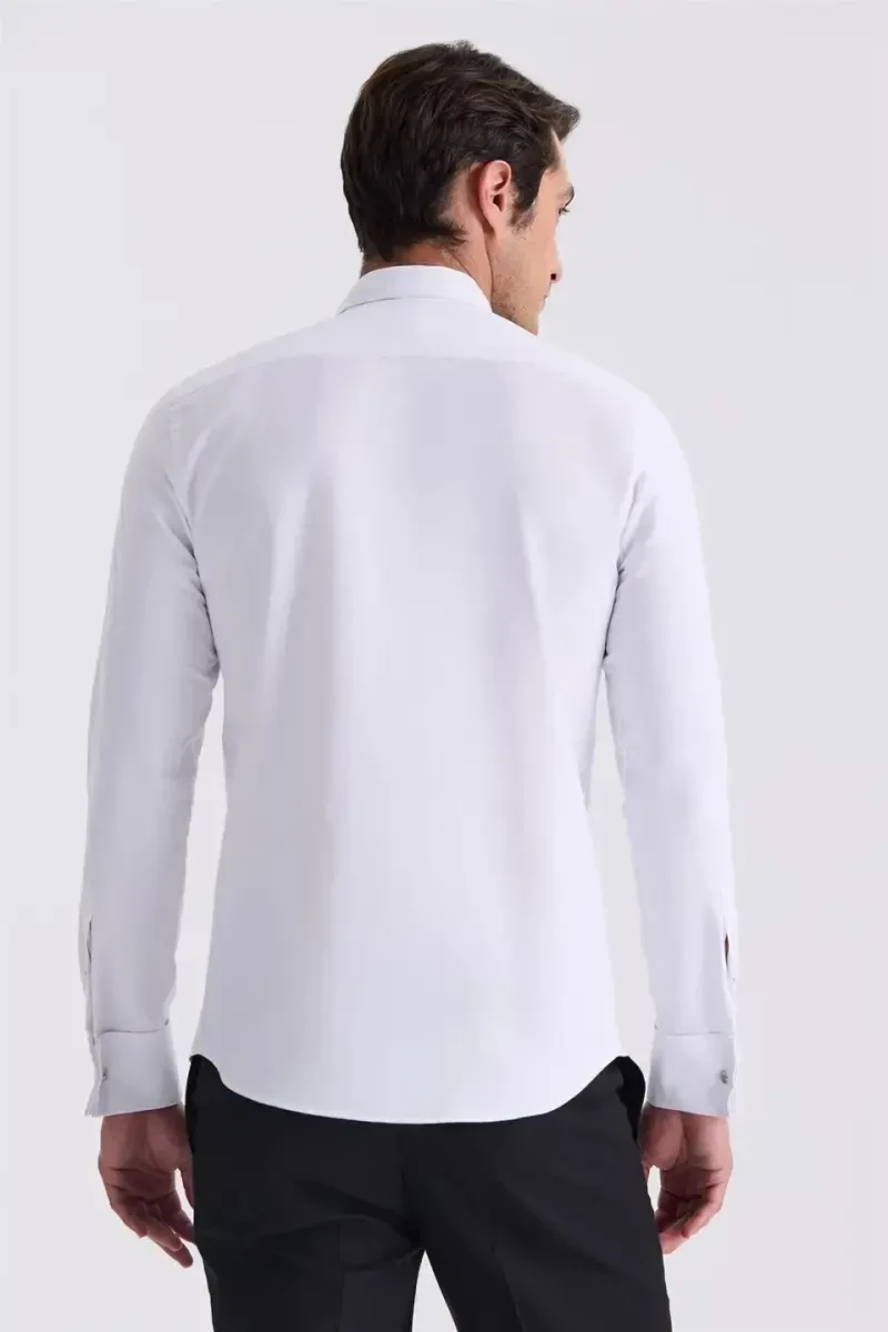 Oq rangdagi Slim Fit Yاقةси Bandli va qo'shaloq manjetli ko'ylak - Nafohat va qulaylik