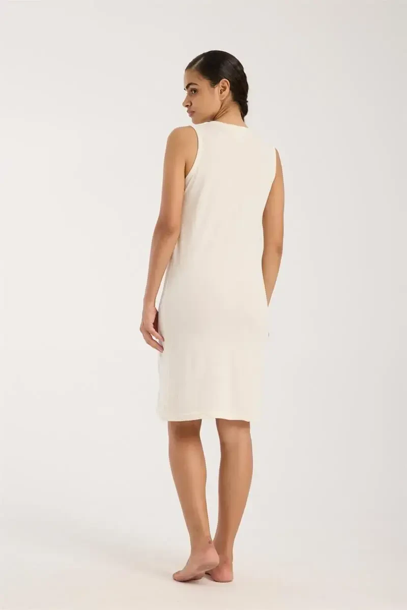 Akbeniz Ekru Paxtali Tunlik | Qalin Yelkali Qulay Penye Uyqu Ko'ylagi