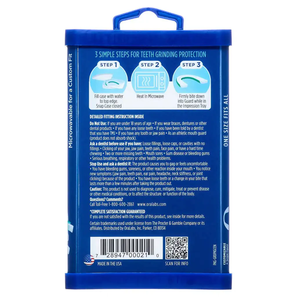 Oral-B Plus Scope Nighttime Dental Guard ҳар қандай ёшдаги катталар учун мос келади. Маҳсулот гигиеник ўрамда етказиб берилади. Фойдаланиш бўйича йўриқнома қути ичида мавжуд. Тиш шифокорининг тавсиясига кўра фойдаланиш тавсия этилади. Ҳар қандай ноқулайлик пайдо бўлганда фойдаланишни тўхтатинг ва тиш шифокорига мурожаат қилинг. Мунтазам тозалаб туришни тавсия этилади. Маҳсулот умри фойдаланиш тезлигига боғлиқ равишда ўзгариши мумкин. Тишларни ғижиллатиш ва қисиш муаммоларини даволаш учун профессионал тиш шифокорига мурожаат қилиш тавсия этилади. Бу маҳсулот муаммони бутунлай йўқ қилишни кафолатламайди, лекин тишлар зарарини минималлаштиришга ёрдам беради. Маҳсулотни мунтазам фойдаланиб, тишларингизнинг соғлигини сақланг ва соғлом табассумдан завқланинг.