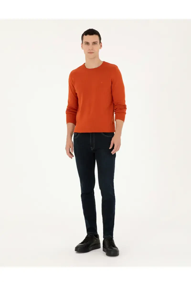 The Orange Slim Fit Crew Neck Basic Knit Sweater is an ideal choice for men who want to achieve a stylish and comfortable look. This knit sweater, which stands out with its vibrant orange color, allows you to create different combinations thanks to its basic design. It is a piece that will complete your elegance on special occasions as well as daily use. The slim fit cut offers a modern silhouette with its body-hugging structure, while the crew neck detail adds a classic touch. The soft texture of the knit fabric provides a comfortable wearing experience all day long. Produced with Aktiv Giyim quality, this sweater is long-lasting and durable. You can always look stylish and well-groomed with this knit sweater, which will be one of the indispensable pieces of your wardrobe. You can easily combine it with different trousers and jackets to reflect your style. It is a candidate to be the favorite piece of winter months with its warming structure in cold weather. It is suitable for men who adopt both sporty and classic styles. The Orange Slim Fit Crew Neck Basic Knit Sweater offers elegance and comfort together.