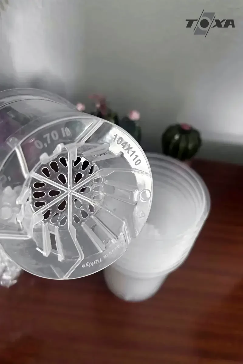 Specially designed for healthy and beautiful growth of your orchids, these clear plastic pots allow you to always observe your roots and easily determine watering needs. 12 pieces of 0.75lt capacity pots are a perfect choice for any type of orchid. Its transparent structure allows you to monitor the development of orchid roots and better understand the roots' watering needs. The plastic material is durable and provides long-lasting use. By growing your orchids in these pots, you can ensure their healthy growth and flowering.