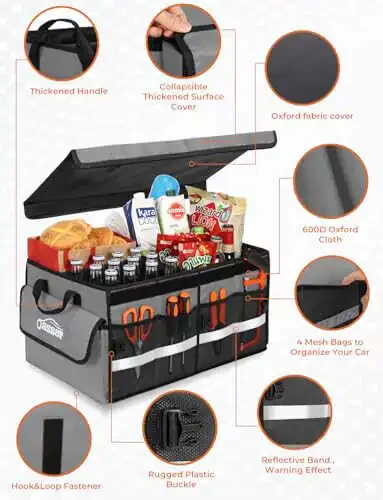 Органайзер для багажника автомобиля Oasser - Складной органайзер для багажника SUV с несколькими отделениями, с отражающей полосой и складным чехлом (Стандартный, Серый)