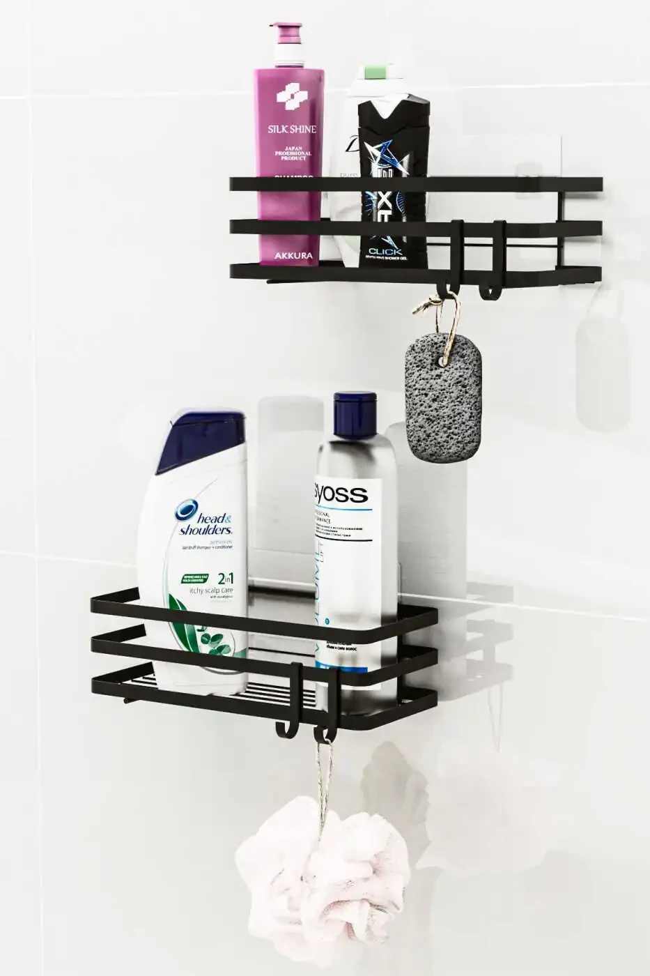 Органайзер для ванной комнаты, набор из 2 предметов: держатель для шампуня и мыльница с ламинированным клейким креплением и 4 крючками, разработан для тех, кто ищет элегантности и порядка в своей ванной комнате. Этот продукт выделяется своей практичностью и современным дизайном. Он помогает вам организованно хранить такие туалетные принадлежности, как шампунь, мыло, гель для душа, и в то же время придает вашей ванной комнате стильный вид. Изготовленный из прочной нержавеющей стали, этот набор обеспечивает длительный срок службы. Благодаря ламинированному клейкому креплению его легко установить, не нужно сверлить отверстия в стене. Органайзер для душа обеспечивает дополнительное место для хранения благодаря своей широкой поверхности и 4 крючкам. Крючки, на которые можно повесить полотенца, мо sponges и другие аксессуары для ванной, помогут вам поддерживать порядок в ванной комнате. Благодаря улучшенному термопластичному клею он обеспечивает надежное сцепление, и вы можете использовать его безопасно, не опасаясь падения. Матово-черный цвет и современный дизайн подходят к любому декору ванной комнаты. Этот продукт, предлагаемый под гарантией Bino Home Garden, является идеальным решением для организации вашей ванной комнаты и придания ей стильного вида. Продукт экономит ваше время благодаря простому монтажу и готовности к использованию. Высокий тройной барьер предотвращает падение ваших вещей и обеспечивает безопасное использование. Большая площадь склеивания гарантирует, что изделие прочно держится на стене. Пластиковые крючки не ржавеют и долговечны.