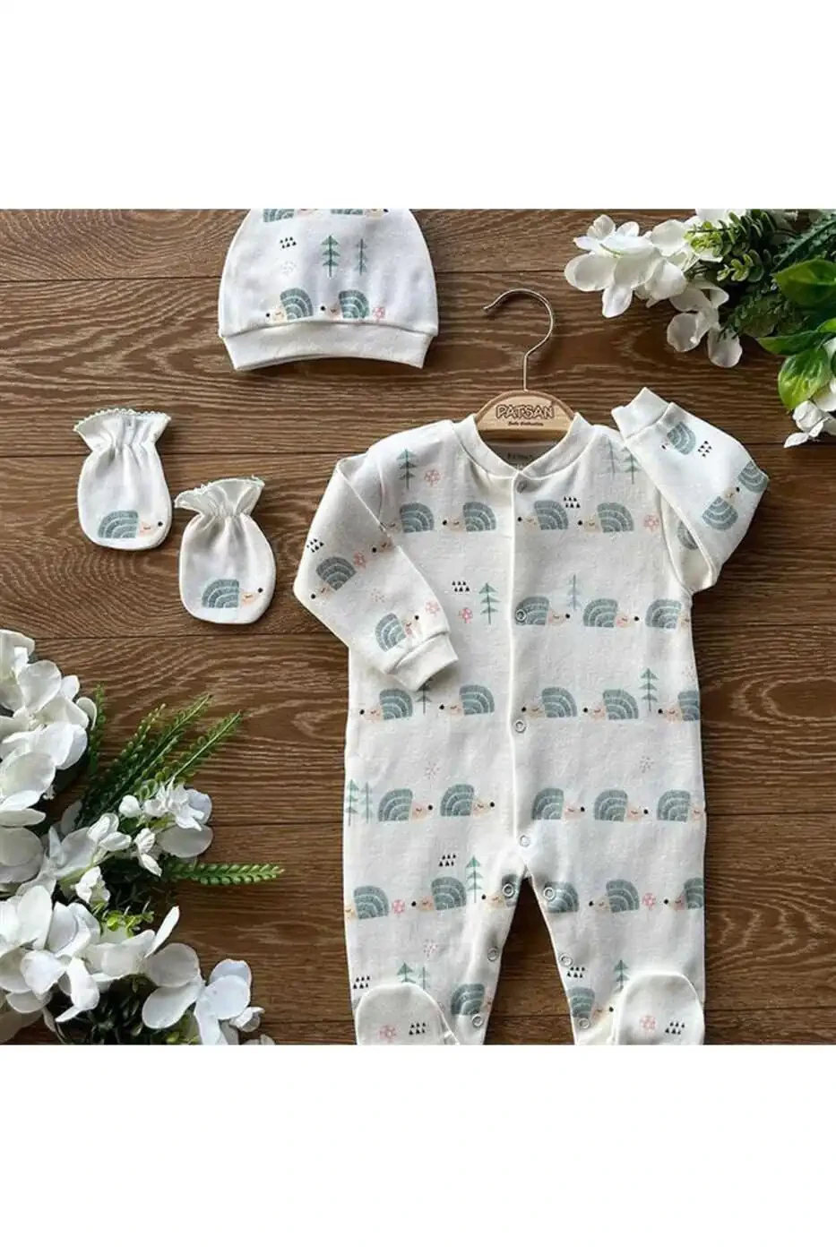 The Organic Cotton 3-Piece Baby Footed Romper Set Hedgehog is a high-quality and reliable product that prioritizes your baby's health and comfort. It is produced in Turkey and produced in accordance with international standards. By purchasing our product, you can both protect your baby's health and support local production. Our product offers a skin-friendly, soft and comfortable use for your baby. By following the washing instructions, you can use our product for a long time. This set, which is ideal for your baby's first months, provides a comfortable and safe environment for him. Now discover this unique product and share in your baby's happiness!