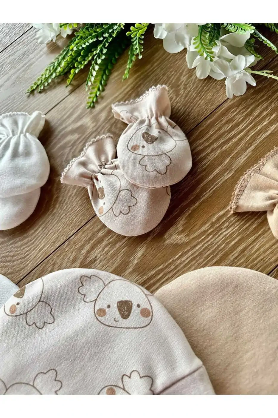 Organic 6-Piece Newborn Baby Mitten Hat Set offers a comfortable and stylish start while protecting your little baby's delicate skin. Made from 100% organic cotton, this special set does not contain any chemicals that could harm your baby's health. It is carefully designed for the delicate skin of newborn babies and minimizes the risk of allergies. The mittens in the set prevent your baby from scratching their face, while the hat keeps their head warm, ensuring a comfortable sleep experience.Product DescriptionOrganic 6-Piece Newborn Baby Mitten Hat Set brings together the essential pieces your baby needs from their first days. This special set is made from 100% organic cotton and does not contain any chemicals that could harm your baby's delicate skin. It is designed considering the delicate skin of newborn babies and minimizes the risk of allergies. The mittens in the set prevent your baby from scratching their face with involuntary movements, while the hat keeps their head warm, preventing them from catching a cold and providing a comfortable sleep environment. The soft texture of organic cotton gently wraps your baby's skin and keeps them comfortable throughout the day. The mitten and hat designs can be easily combined with your baby's clothes, offering both a stylish and practical option. This set is ideal not only for your baby but also for parents who want to make an environmentally conscious choice. Organic production processes contribute to the preservation of natural resources and a sustainable future. Designed with your baby's health and comfort in mind, this set also attracts attention with its stylish and modern appearance. Offered in different color and pattern options, this set adds color to your baby's wardrobe while making parents' lives easier with its practical use. The Organic 6-Piece Newborn Baby Mitten Hat Set is also an excellent option as a baby shower gift. By offering new parents the basic and healthy products they will need in their baby's first days, you can share in their happiness. This special set will be a lovingly and carefully prepared gift that will be part of your baby's first memories. Our product is manufactured to the highest quality standards as an indication of the importance we place on your baby's health and comfort. This set, which you can use with confidence, will accompany your baby in their growth process and will be an unforgettable piece. Meet your baby's first days in a healthy, comfortable, and stylish way with the Organic 6-Piece Newborn Baby Mitten Hat Set.Product Features* 100% Organic Cotton* Special Design Reducing Allergy Risk* Mittens Prevent Face Scratches* Hat Keeps Head Warm* Ideal for Newborn Babies* Complete Set Consisting of 6 PiecesAdditional InformationDue to the organic nature of the product, it may shrink slightly in the first wash. It is recommended to use low temperature and gentle detergent when washing the product. To prevent the colors of the product from fading, it should not be dried in direct sunlight. It is recommended to wash regularly for your baby's health.