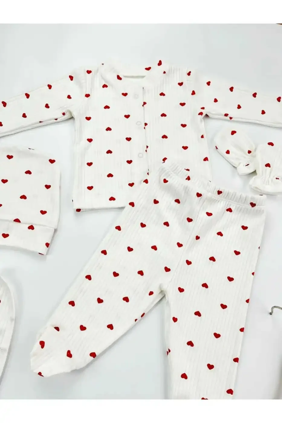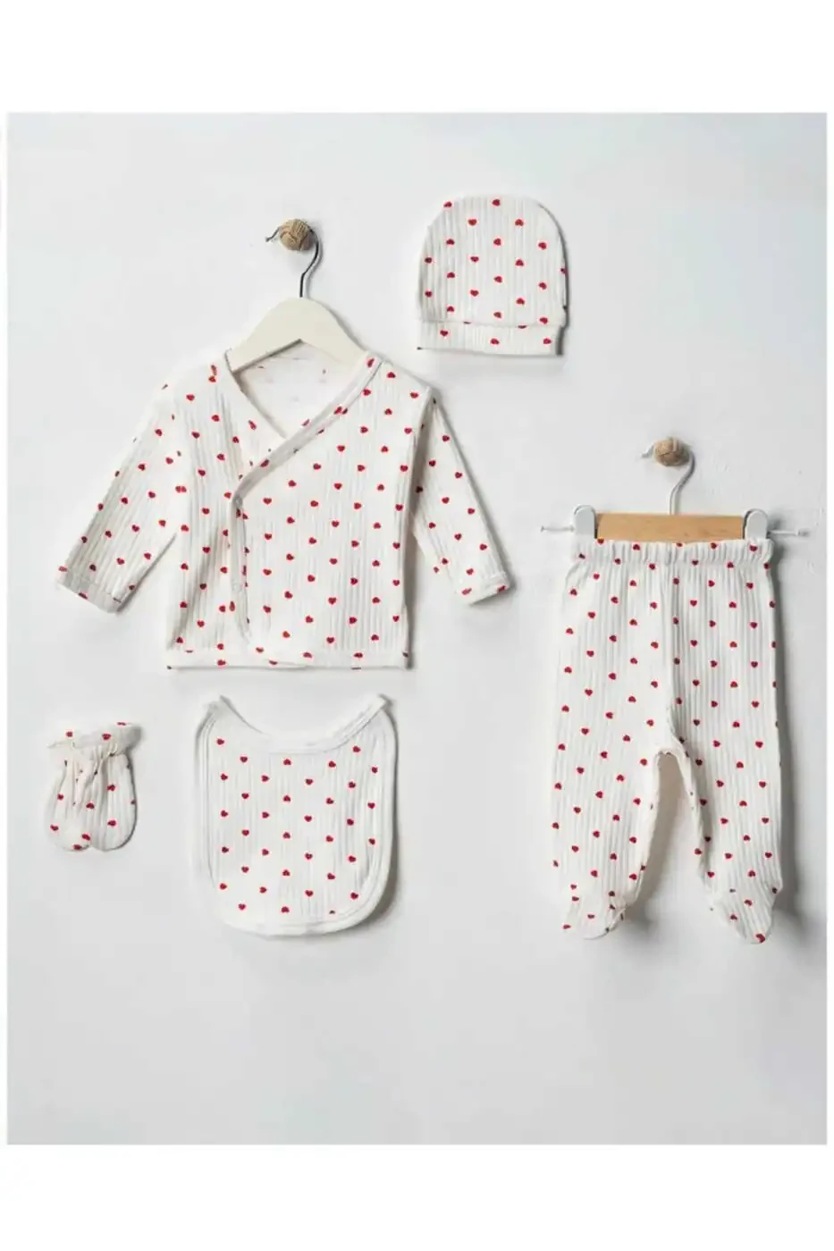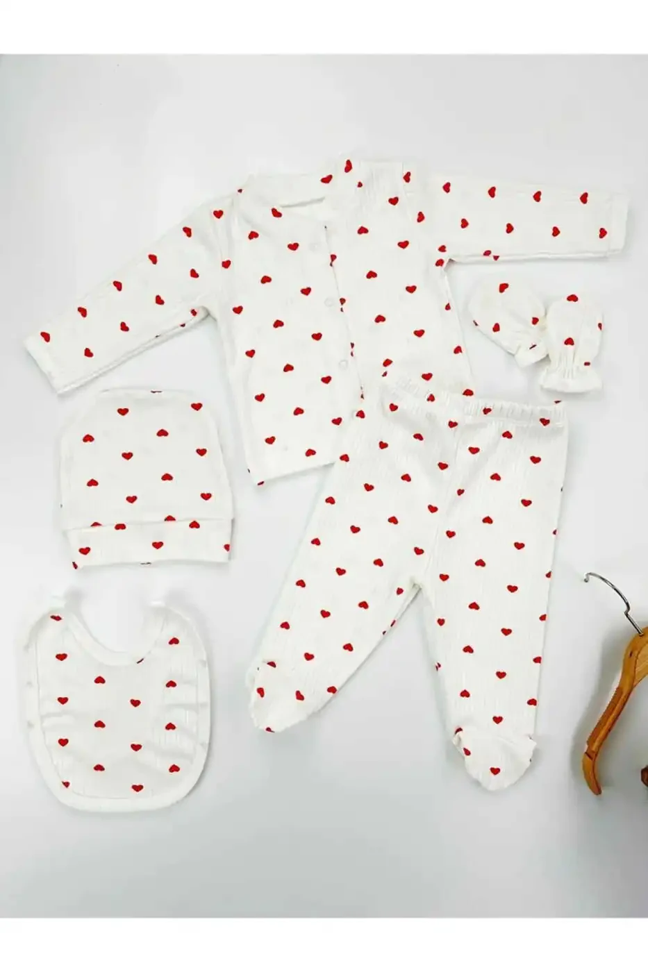 Chaqalog'ingizning nozik terisi uchun g'amxo'rlik bilan ishlab chiqilgan, 100% organik paxtadan tayyorlangan 5 qismli yangi tug'ilgan bola uchun peçete to'plami, chaqalog'ingizni birinchi kunlaridan boshlab qulaylik va uslub bilan o'raydi. Kichkina chiziqli ekru matoning yumshoq to'qimasi chaqalog'ingizning qulayligini ta'minlaydi. Qizil yurak bilan bezatilgan quti ham zamonaviy sovg'a varianti, ham chaqalog'ingizning maxsus narsalarini saqlash uchun idealdir.