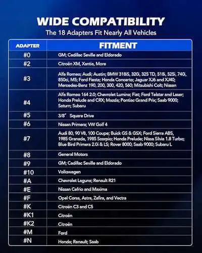 Complete Tool Set: Orion Motor Tech's 24-piece brake caliper compression tool set includes 2 retaining plates, 2 thrust bolt assemblies, 2 brake caliper hangers, and 18 adapters, easily servicing your brakes without damage Universal Compatibility: This brake caliper tool kit includes a wide range of adapters to fit most vehicles, including hundreds of American, Japanese, and European models, fully covering your brake servicing needs Hassle-Free Use: Simply rotate the pistons back into their calipers to clear the pads. Embedded magnets in each thrust bolt assembly securely hold drive keys and adapters, while the right and left handed designs ensure versatile operation Durable Construction: Crafted from heavy-duty 1045 steel, this caliper piston compressor tool set offers exceptional strength and durability, with a powder coating for enhanced wear and corrosion resistance Compact & Portable: Our disc brake caliper tool set comes in a convenient storage case, ensuring your tools are organized and always within reach for home and on-the-go repairs