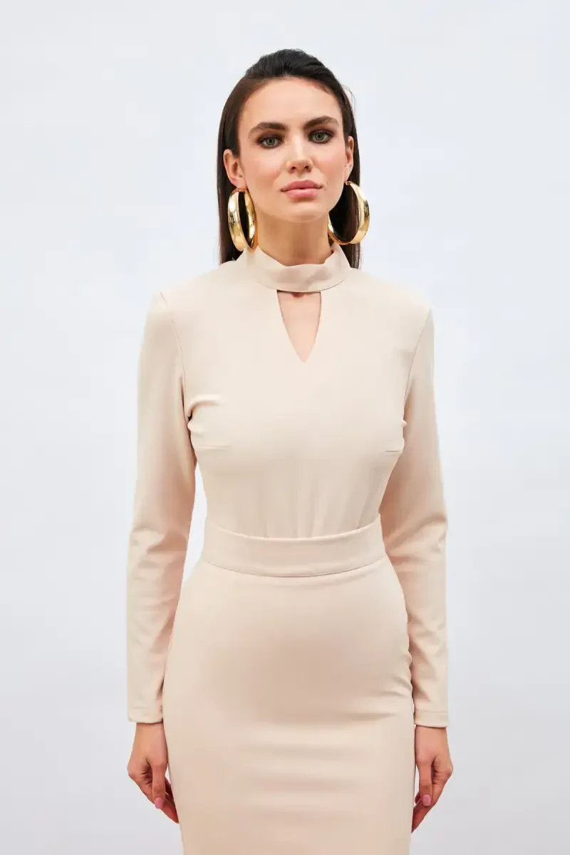 Zamonaviy va oqlangan ko'rinish uchun ideal bo'lgan Orqa qismi detalli Bodysuit Bluzka, garderobingizning ajralmas qismi bo'ladi. Bej rangi bilan har qanday uslubga mos keladigan bu bodysuit, orqa tomonidagi detalli kesimi bilan diqqatni tortadigan ko'rinishga ega. Tanangizga mukammal mos keladigan tuzilishi bilan qulaylik va oqlanganlikni birlashtirgan bodysuit, kundalik foydalanish uchun juda mos keladi. Paxta va elastan aralashmasidan tayyorlangan bodysuit, nafas oladigan tuzilishi bilan kun bo'yi qulay foydalanish imkonini beradi.