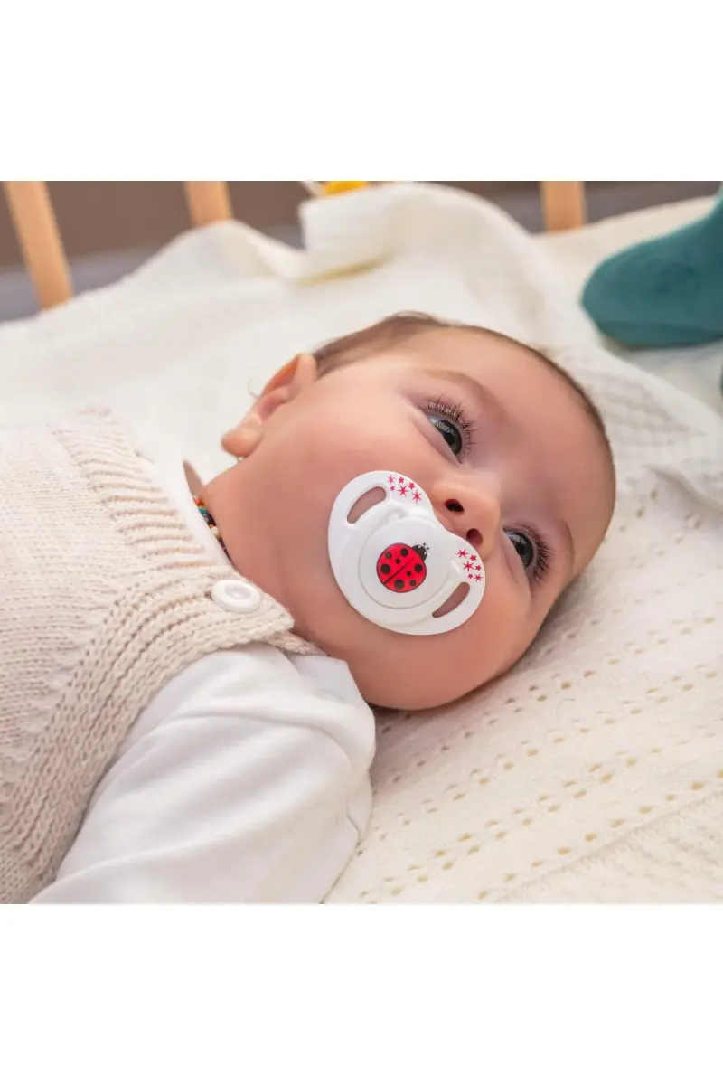 Ортодонтическая соска-пустышка, Красная Божья Коровка, 12+ месяцев, футляр для соски, 1 шт.