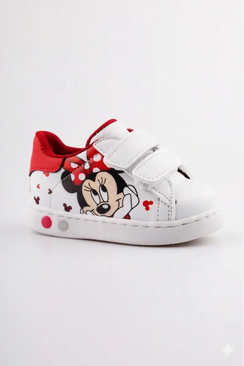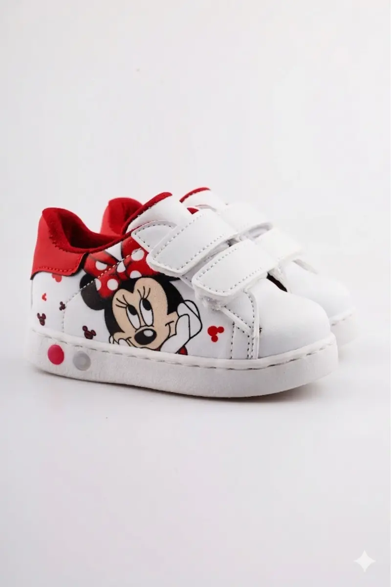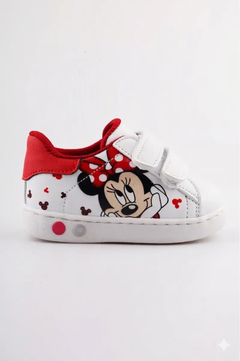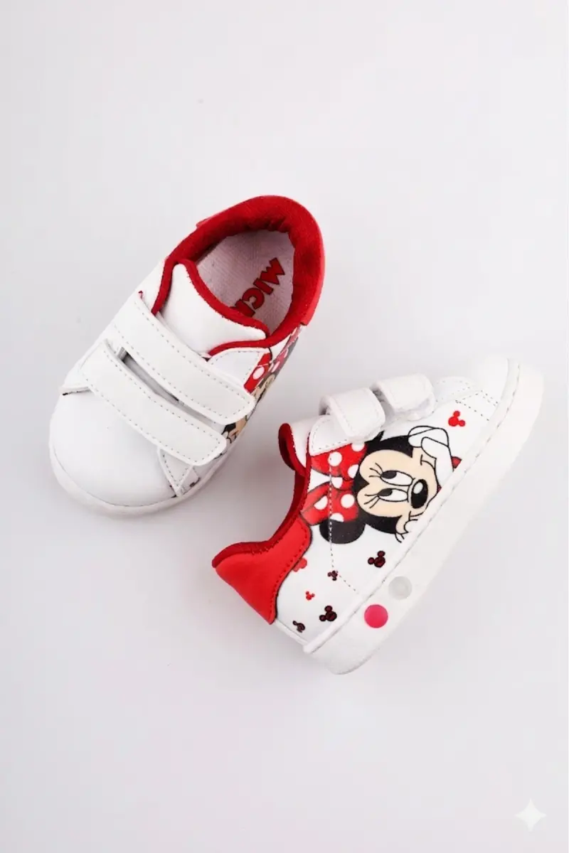 Ortopedik Işıklı Cırt Cırtlı Hafif Rahat Yumuşak Esnek Kız Bebek İlk Adım Ayakkabısı Yeni Sezon 2026-Beyaz Kırmızı Mck
