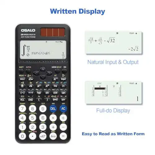 **OSALO Ilmiy kalkulyator 417 Funksiya 2 Qator 10+2 Raqamli Yozilgan Ekran Quyosh va batareya kalkulyatorlari Maktab kollej talabalari uchun O'rtacha Qora (OS 991ES Plus 2-nashri)**
