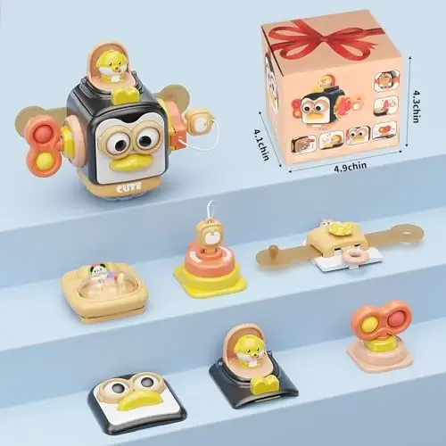 Get ready to explore with OSIMILY Montessori Toys for 1-year-olds! This sensory toy cube, specially designed for babies and children aged 1-3, is designed to contribute to the development of little hands and curious minds. This activity cube, which you will not want to be without on your travels, develops fine motor skills while providing an educational experience. An ideal birthday gift option for babies aged 6, 9, 10, 12 and even 18 months, OSIMILY Montessori Toys will be your child's most fun friend on their development journey. This toy offers not only fun but also an opportunity to learn and explore. Filled with different activities that your little one can touch, turn, push and pull, this cube improves your baby's hand-eye coordination and fine motor skills, while also contributing to their mental development. The faucet detail that develops imitation ability helps them recognize objects from daily life, while different buckles support their problem-solving skills. Pressable mouths awaken your baby's curiosity, while the plug and socket simulation allows them to learn safely. Fidget spinners and pop-it bubbles enrich their sensory experiences. The ball rattle improves auditory perception and increases your baby's joy by making fun sounds. OSIMILY Montessori Toys are specially designed to support your baby's sensory development. Bright colors, different textures and various activities stimulate your baby's senses of sight, touch and hearing, helping them discover the world. This toy is not only fun but also an educational tool. While attracting your baby's attention, it also improves their learning abilities. It helps them understand the cause-and-effect relationship, while also supporting their creativity and imagination. OSIMILY Montessori Toys are an ideal toy that you can take with you on your baby's travels. Thanks to its small and portable design, you can keep your baby entertained at home, in a restaurant, in a car, on a plane or in church. Most importantly, this toy is quiet, so it can be used comfortably even in public places. While keeping your baby busy for a long time, it does not disturb those around you. This toy is made of high-quality ABS material and has American children's toy certifications (CPC, ASTM certification). It has safe, durable and easy-to-clean features. Your baby's health and safety is our top priority. If you are still looking for a baby boy gift, OSIMILY Montessori Toys are for you! This busy cube will keep your baby entertained and busy for hours. It is a perfect choice as a newborn gift, birthday gift or Christmas gift. Contribute to your baby's development and give them an unforgettable gift with OSIMILY Montessori Toys.