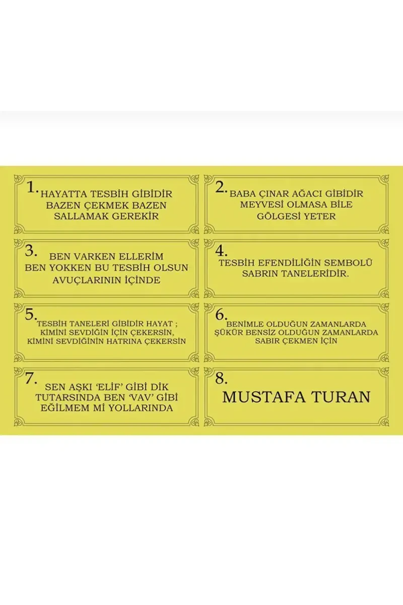Наш именной бордовый четки из моргальского дерева с узорами, в специальной коробке, с подписью мастера, с подарочным сертификатом для мужчин - это уникальный аксессуар, сочетающий в себе элегантность и духовность. Эти четки, созданные из натуральной красоты дерева моргаль и мастерства исполнения, являются прекрасным выбором как для повседневного использования, так и для особых случаев. Благодаря индивидуальному дизайну вы можете сделать незабываемый подарок своим близким, а также сделать значимые инвестиции в себя.**Описание продукта**Наш именной бордовый четки из моргальского дерева с узорами, в специальной коробке, с подписью мастера, с подарочным сертификатом для мужчин - это редкий предмет, сочетающий в себе эстетику и смысл. Каждая бусина этих четок, тщательно отобранная из дерева моргаль, ослепляет теплотой бордового цвета и естественной красотой узоров. Уникальная текстура и долговечность дерева моргаль обеспечивают сохранность четок в первозданном виде на долгие годы. Подпись мастера является показателем ручной работы и качества этих четок. Специальная коробка позволяет безопасно хранить четки и делать стильную презентацию своим близким. Гармония между каждой бусиной четок и прочность нити обеспечивают простоту использования и долговечность. Благодаря возможности нанесения индивидуального имени, эти четки перестают быть просто аксессуаром и приобретают особое значение для своего владельца. Подарив своим близким четки с выгравированным именем, вы можете сделать им незабываемый жест и укрепить свои связи. Четки - это не только инструмент для поклонения, но и выражение стиля. Это аксессуар, который дополнит вашу элегантность в повседневной жизни или на особых мероприятиях и отразит ваши духовные ценности. Каждая бусина даст вам покой во время чтения зикра, уменьшит стресс и повысит внутреннее спокойствие. Если вы ищете значимый подарок для своих близких в особых случаях, наш именной бордовый четки из моргальского дерева с узорами, в специальной коробке, с подписью мастера, с подарочным сертификатом для мужчин станет отличным выбором. Вы можете порадовать своих близких этими уникальными четками на День отца, день рождения, годовщину или другие особые случаи. Наши четки - это не просто подарок, это еще и ценность. Благодаря естественной красоте дерева моргаль, мастерству исполнения и индивидуальному дизайну, эти четки станут значимым сувениром, который будет сопровождать своего владельца всю жизнь.**Характеристики продукта*** Изготовлены из дерева моргаль.* Имеют подпись мастера.* Поставляются в специальной коробке.* Возможно нанесение индивидуального имени.* Бордовый цвет с узорами.* Идеально подходят для мужского подарка.* Имеют сертификат.* Каждая бусина тщательно обработана.* Прочные и долговечные.* Подходят для повседневного использования и особых случаев.**Дополнительная информация**Поскольку наши четки изготовлены из натурального дерева моргаль, могут быть различия в цвете и рисунке. Для обеспечения долговечности четок рекомендуется держать их подальше от парфюмерии, спирта и подобных химических веществ. Пожалуйста, укажите желаемое имя при оформлении заказа для нанесения индивидуального имени. Сертификат будет отправлен вместе с продуктом.