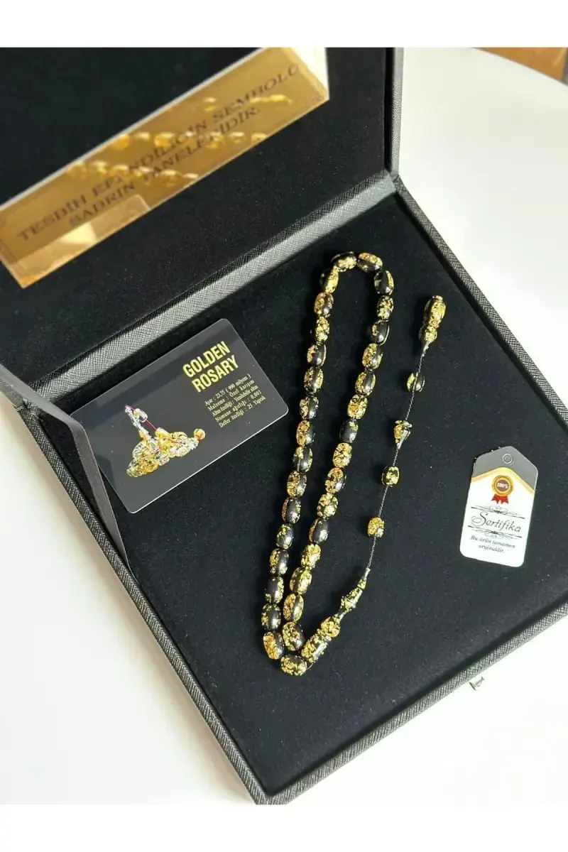 Персонализированные четки с золотыми частицами в специальной коробке - это уникальный подарок для мужчин, с сертификатом и индивидуальной гравировкой имени. Этот эксклюзивный продукт предлагается от Kehribar Store и доступен в ограниченном количестве. Хотя наш продукт может предлагаться несколькими продавцами, Kehribar Store выделяется лучшей ценой, рейтингом продавца, быстрой доставкой и надежным обслуживанием. Эти четки, сочетающие в себе элегантность и духовность, привлекают внимание своим особым дизайном и золотыми деталями. Эти четки станут незабываемым подарком как для себя, так и для близких. После оформления заказа вы можете указать желаемый номер текста или имя, чтобы сделать ваши четки полностью персонализированными. Наш продукт поставляется в специальной кожаной коробке с сертификатом на съедобные четки из 24-каратного сусального золота. Этот коллекционный продукт отличается высоким качеством изготовления. Бархатистая текстура и специальная система обеспечивают уникальный опыт. Эти четки идеально подходят для людей с большими пальцами и любителей больших размеров и поставляются в специальной коробке и сумке от нашего магазина. Эти специальные четки - идеальный выбор, чтобы порадовать своих близких и сделать им незабываемый подарок. Фотографии нашего продукта сделаны при естественном дневном и солнечном свете, что позволяет нам наиболее точно отражать реальные цвета и детали продукта. В качестве материала используется специальная литая смесь плексигласа и прессованного янтаря из авиационного стекла. Это обеспечивает как долговечность, так и эстетичный внешний вид. Каждая деталь четок была выполнена с заботой и вниманием, в результате чего получился идеальный предмет, изготовленный мастером Арифом Бараном.