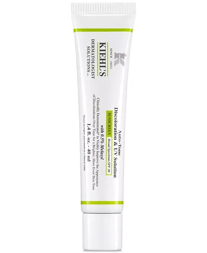 Auto-Tone Discoloration & UV Solution, 1.4 oz. – разработан в лабораториях Kiehl's и представляет собой революционное решение в борьбе с неровным тоном кожи. Эта специальная формула обогащена SPF-защитой и запатентованной технологией Melasyl 0,5%. Он помогает выровнять тон кожи, заметно уменьшая появление темных пятен, пигментации и следов от прыщей. Благодаря широкому спектру SPF 30 защищает кожу от вредного воздействия УФ-лучей, придавая ей сияющий и здоровый вид. Эта уникальная формула от Kiehl's предлагает эффективное решение в борьбе с неровным тоном кожи, помогая раскрыть ее естественную красоту. Он обеспечивает коже необходимый уход, защищая ее от вредного воздействия солнца. Благодаря легкой текстуре быстро впитывается в кожу и образует на ней невидимый слой, также может использоваться в качестве базы под макияж. Auto-Tone Discoloration & UV Solution станет незаменимой частью вашего ухода за кожей и поможет сделать ее более здоровой, сияющей и ровной. Попрощайтесь с неровным тоном кожи и откройте заново сияние вашей кожи с Kiehl's.