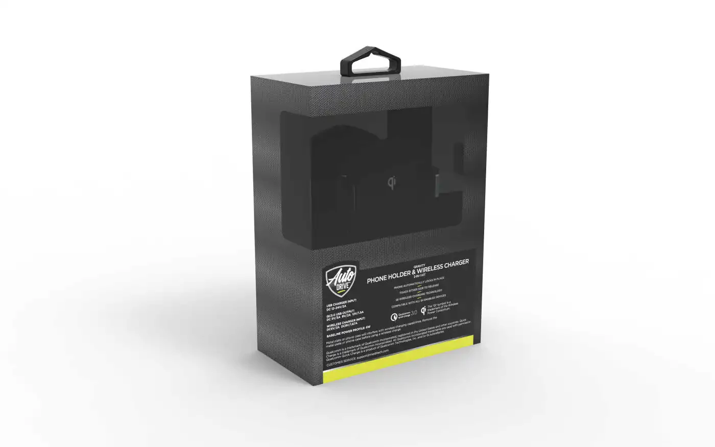 Auto Drive Silver Vent Mount Wireless Charger, Auto-Clamping, Compatible with Qi-Enabled Phones. Securely mounts to vent. Compatible with Qi-enabled phones. Auto-clamping. Charges on contact. Includes: Vent Mount, Type C Cable, and Instructions.