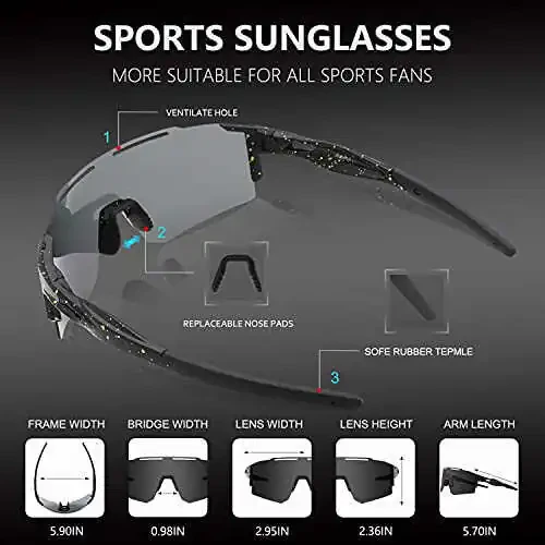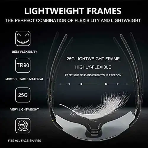 OULAIQI Cycling Sunglasses are designed with polarized lenses that are perfect for cycling, running, fishing, hiking, driving, and other outdoor activities. Its durable and lightweight frame provides comfortable wear all day long. With options for 1 lens or 3 interchangeable lenses, you can always get the protection you need.