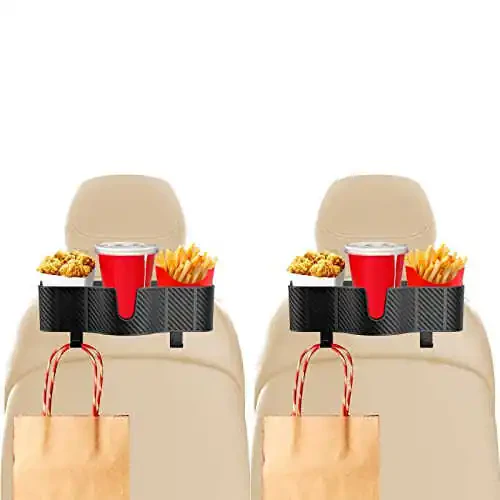 The OUSHASAA Car Headrest Backseat Organizer is designed to make your journeys more organized and comfortable. With a 3.7-inch cup holder, two pockets and headrest hooks, it allows you to organize all the items you need in your car.