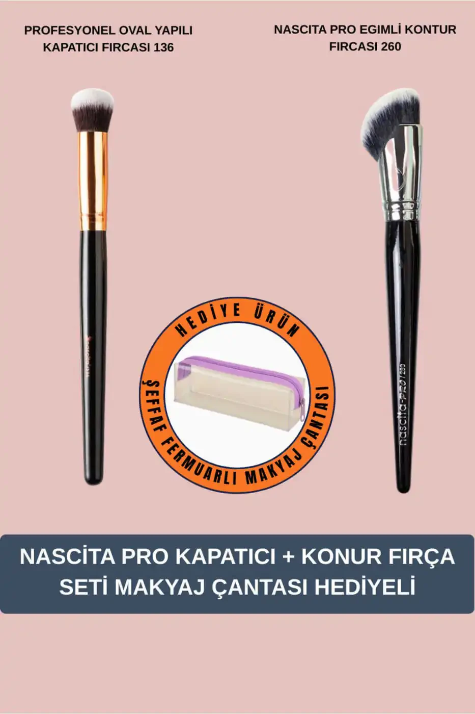 Kamolsiz bo'yanish qiyofasini yaratish uchun zarur bo'lgan ikkita cho'tka: Oval shaklidagi konsiller cho'tkasi 136 va Nascita Pro burchak ostida kontur cho'tkasi 260.