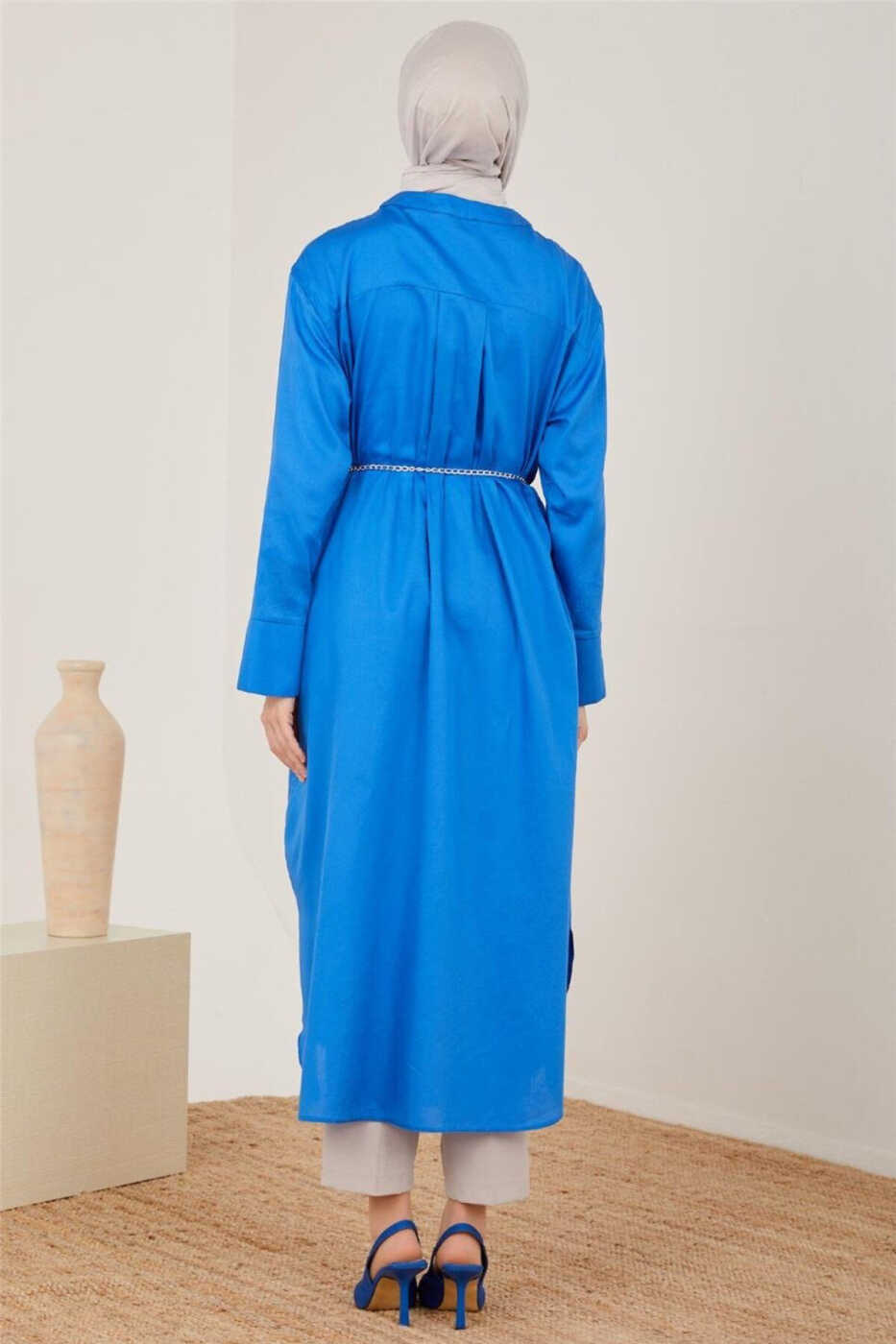 Платье-туника Oversize, кобальтовое платье-туника, платье-туника с цепочкой, стильное платье-туника, яркое платье-туника