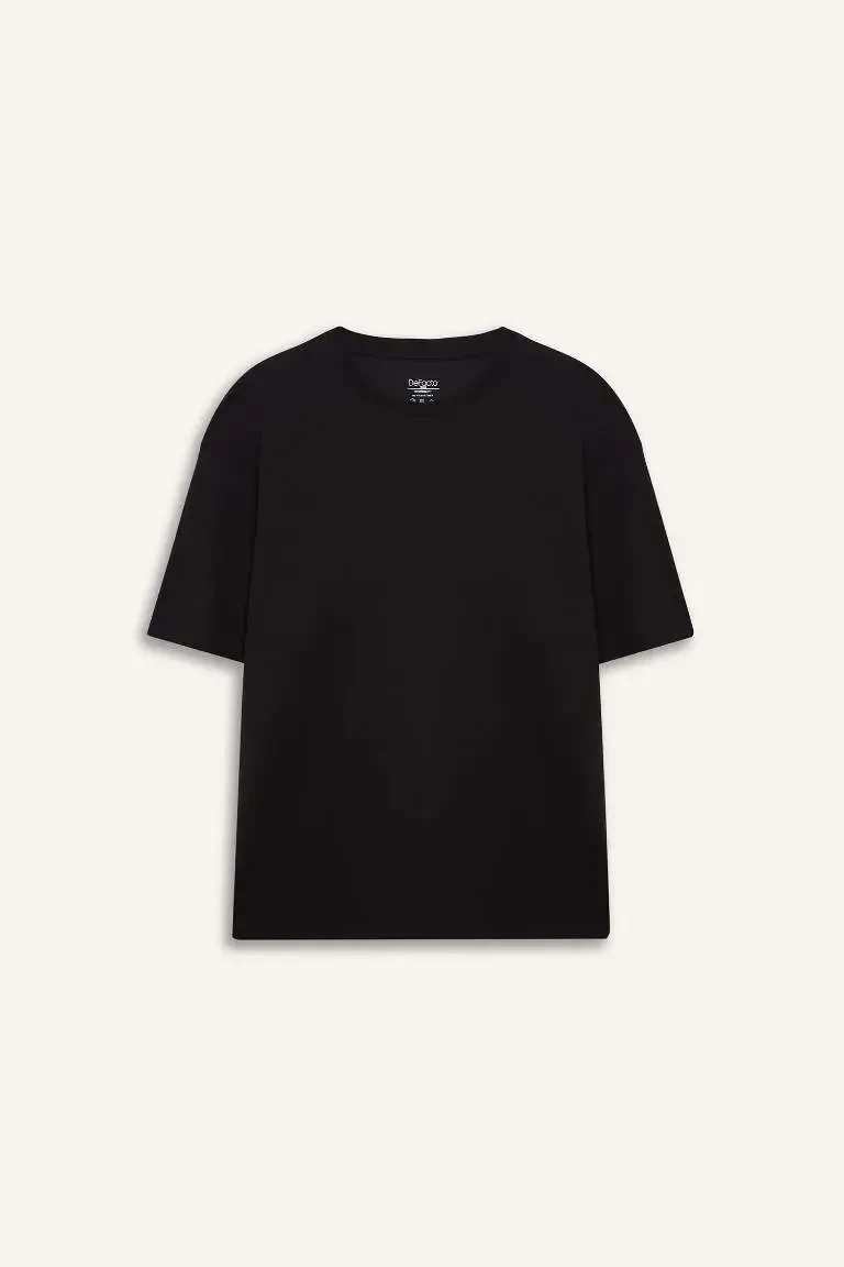 Oversize Fit Crew Neck Short Sleeve Basic Heavyweight T-Shirt Black - Comfortable and Stylish