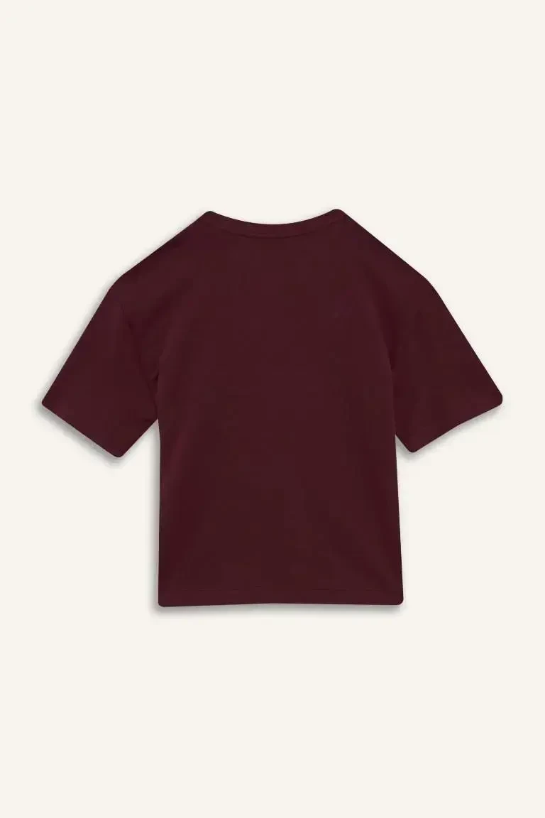 Oversize Bordo Futbolka: %100 Paxta, Velosiped Yoqasi, Qisqa Yengli