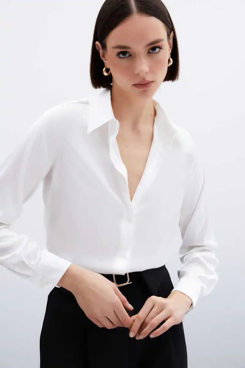 Ortiqcha kattalikdagi atlas ko'ylak, nafislikni va qulaylikni birlashtiradigan, shkafingizning ajralmas qismi bo'ladigan dizayn. Yumshoq va oqimli atlas matodan tikilgan ushbu ko'ylak oqlangan ko'rinishni taqdim etadi, shu bilan birga kun bo'yi qulaylik beradi. Ortiqcha kattalikdagi kesimi tufayli qulaylikni ta'minlaydigan ko'ylak har qanday tanaga mos keladi. Ekru rangi har qanday kombinatsiyangizga osonlikcha moslashib, uslubingizni to'ldiradi.