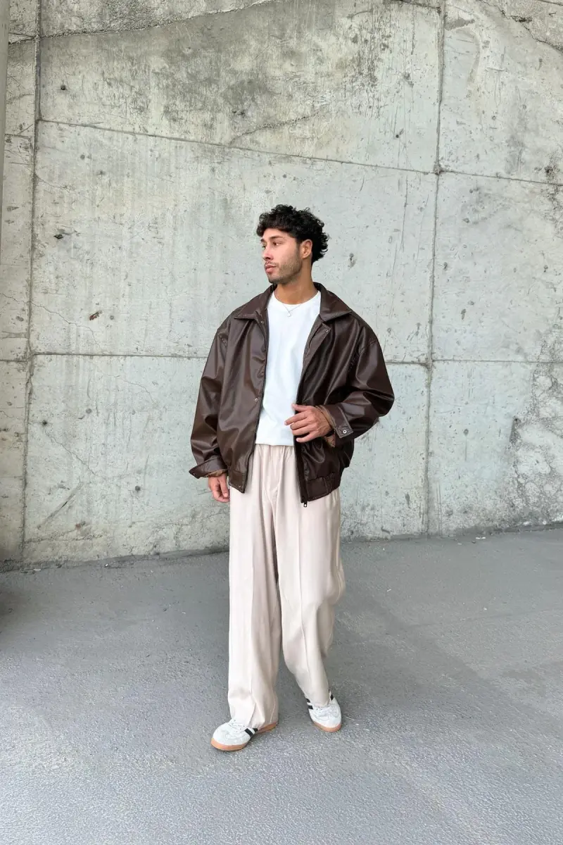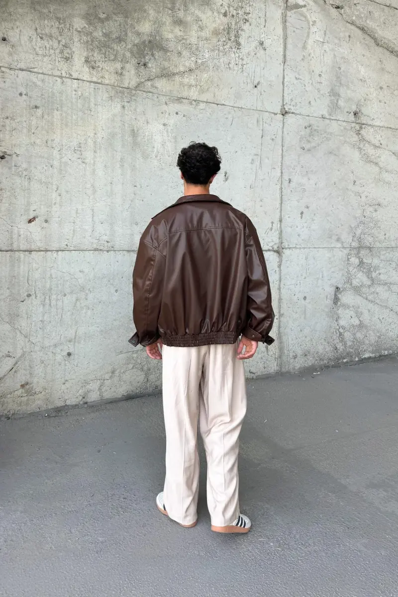 Oversize Vintage Erkek Acı Kahve Deri Ceket-Acı Kahve