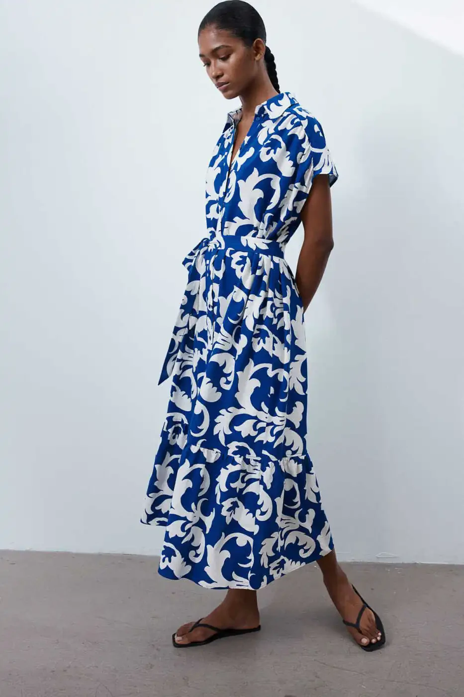 You can combine this dress with sneakers for a casual look or with high heels for a stylish dinner. You can add a jacket or cardigan on top to achieve a more formal look.