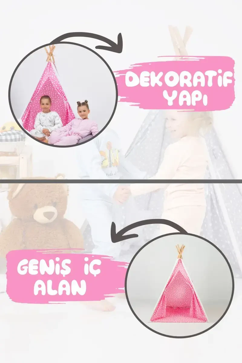 Bolalar oʻyin chodiri - Qizil terili pushti paxtali chodir | Oʻyin oʻrtogʻi bilan xursandchilik!