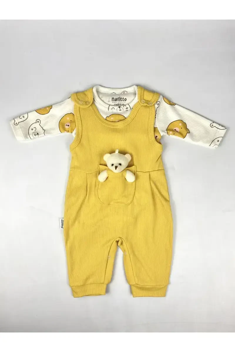 Bebek tulum, paxta, chitirqli, uzun yengli, o'yinchoqli, bosmali, xantal rangi, terlatmaydigan, yangi tug'ilgan, bebek kiyim