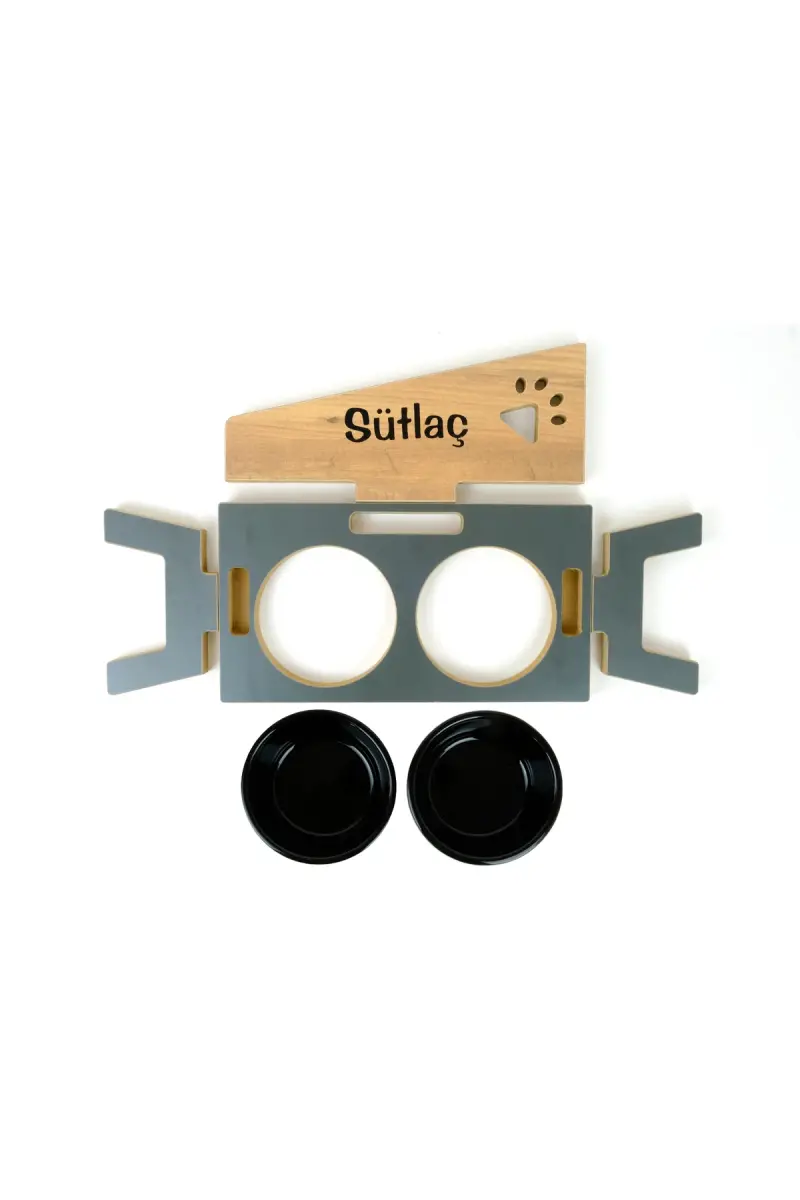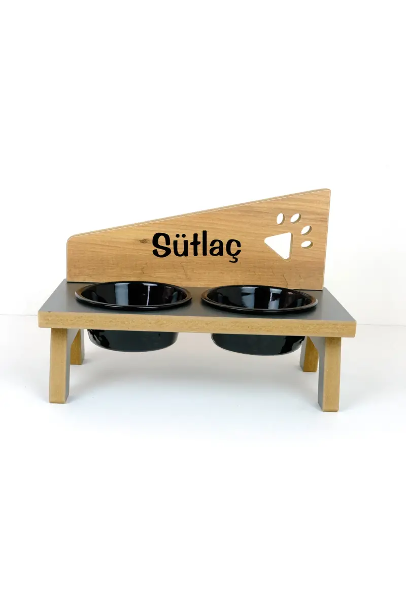 Özel İsimli, Seramik Kaseli, Kedi- Küçük Irk Köpek Mama Ve Su Kabı Stantı-siyah/400 Ml.-Antrasit