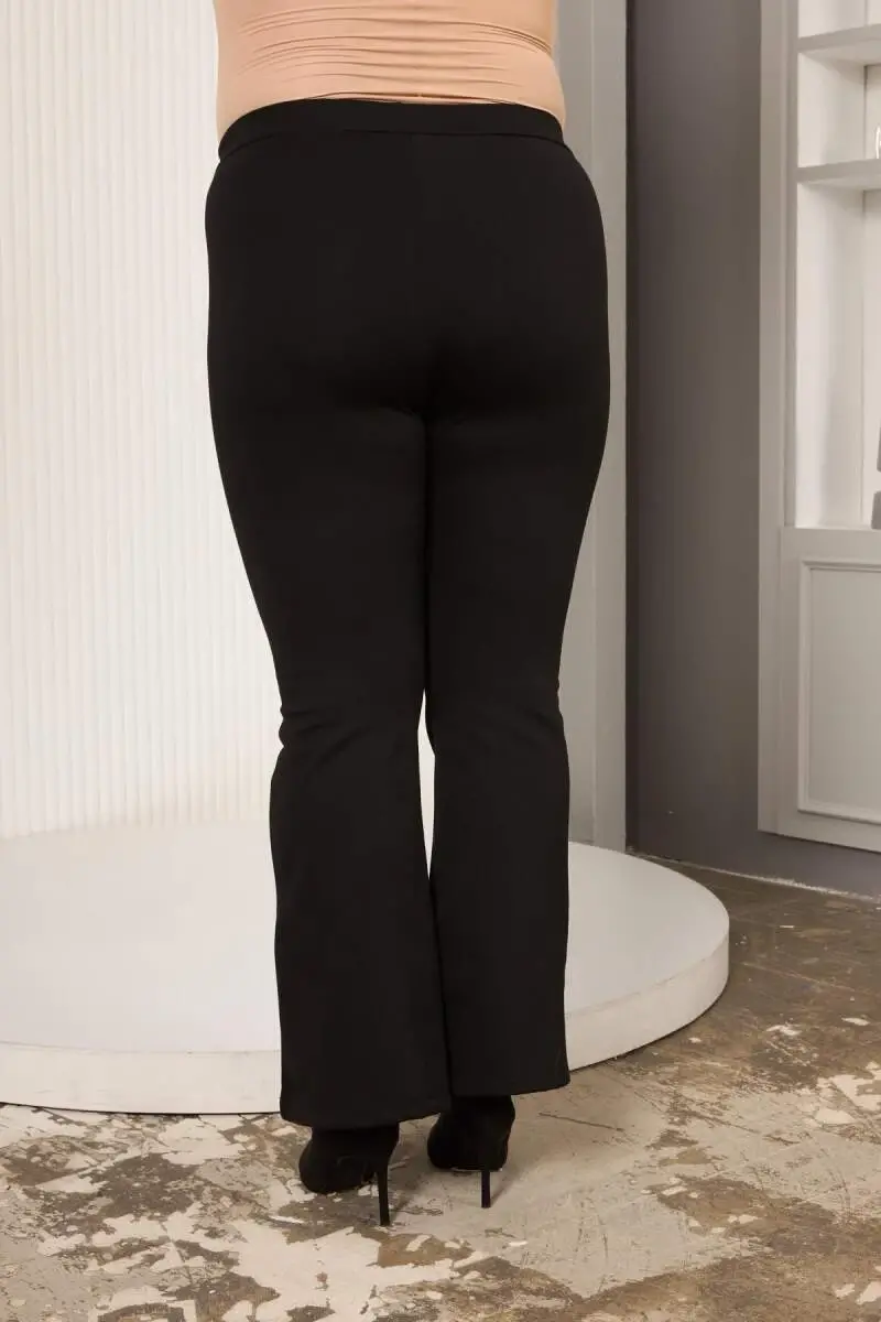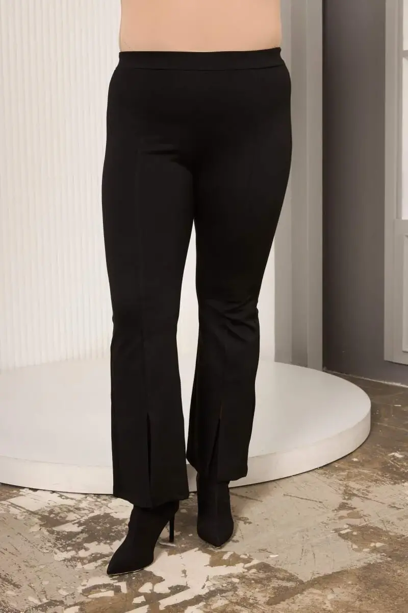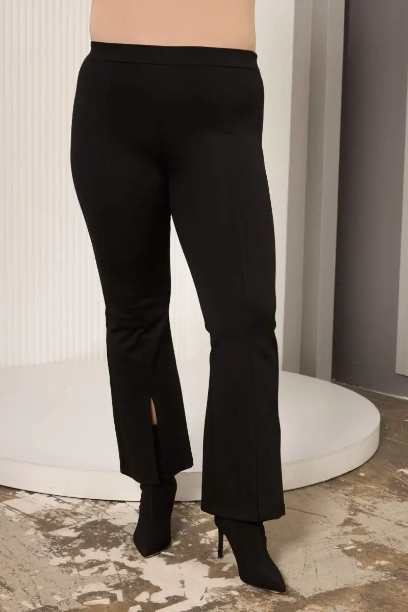 Paça Yırtmaç Detaylı Büyük Beden Siyah Tayt