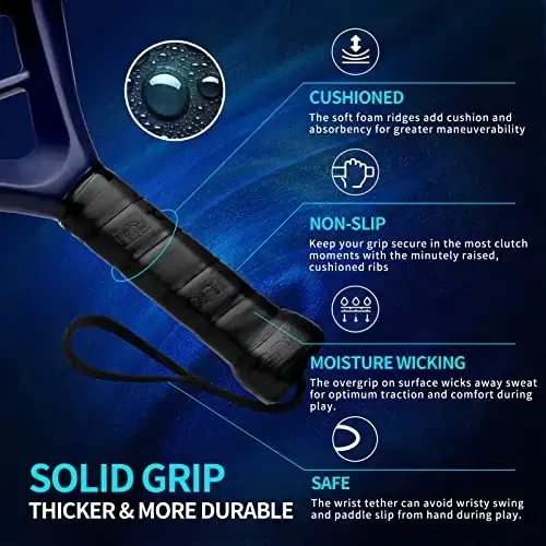Padel Thickness: 1.46 inches. Weight: 360g-370g. Suitable for everyone from beginner to advanced players.
