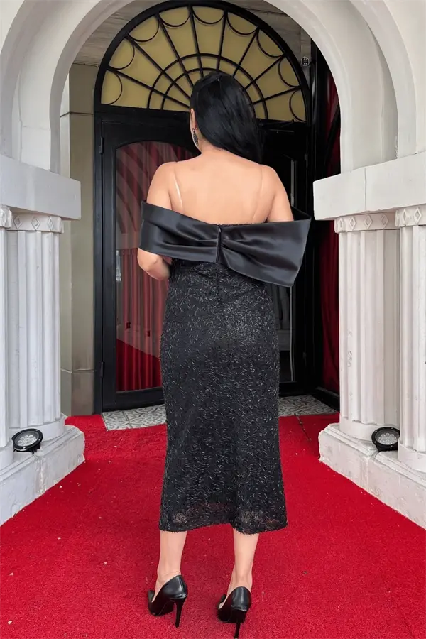 Добавьте незабываемый штрих к своим особенным моментам с помощью платья-карандаш с пайетками, атласной лодочкой и вырезом лодочкой, которое предлагает одновременно ослепительную элегантность и изящество. Это черное платье стандартного кроя идеально подчеркнет ваши формы и обеспечит вам комфорт. Блестящая ткань с пайетками, роскошная текстура атласа и изящный крой выреза лодочкой создают изысканный образ. Благодаря застежке-молнии сзади его легко надевать и снимать. Внутренняя подкладка обеспечивает комфорт в течение всего дня, а слегка эластичная структура не ограничивает вашу свободу движений. Это платье, которое вы можете выбрать для особого случая, элегантного ужина или самых особенных дней, поможет вам лучше всего отразить свой стиль. Это платье-карандаш, сочетающее в себе сияние пайеток и элегантность атласа, станет незаменимой частью вашего гардероба. Создайте разницу в любой обстановке с помощью этого специального дизайна, который поднимет вашу элегантность на новый уровень и привлечет все взгляды. Юбка-карандаш подчеркнет ваш женственный силуэт, а вырез лодочкой изящно подчеркнет вашу шею. Это платье, сочетающее в себе благородство черного и сияние пайеток, станет выбором стильных женщин. Это платье, которое вы сможете использовать долгие годы благодаря качеству ткани и тщательности изготовления, — это не просто одежда, а инвестиция. Почувствуйте себя особенной и произведите незабываемое впечатление, примерив платье-карандаш с пайетками, атласной лодочкой и вырезом лодочкой прямо сейчас.