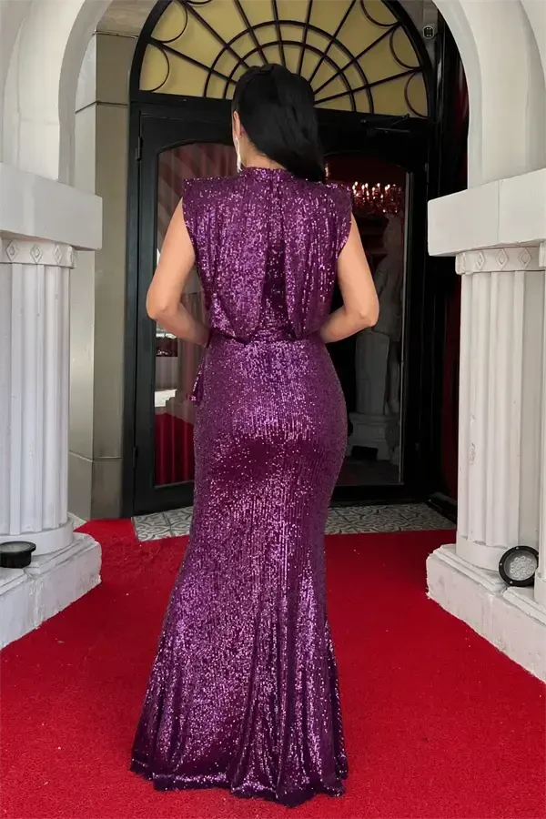 Блесните в особых случаях в этом вечернем платье с оборками и пайетками цвета баклажана, сочетающем в себе ослепительный шик и элегантные детали! Это великолепное вечернее платье привлекает внимание завораживающим оттенком баклажанового, а блеск ткани с пайетками подчеркивает вашу элегантность. Детали сборки придают платью движение и современный вид, идеально подчеркивая ваши формы. Длина 155 см от плеча обеспечивает стильный и удобный вид. Наше вечернее платье — идеальный выбор для любого особого мероприятия, от светских приемов до свадеб, помолвок и коктейльных вечеринок. Подкладка обеспечивает комфорт в течение всего дня, а застежка-молния сзади позволяет легко надевать и снимать платье. Несмотря на отсутствие косточек в области груди, структура ткани и крой обеспечивают идеальную посадку по фигуре и создают безупречный силуэт. Легкая эластичность не ограничивает вашу свободу движений и обеспечивает комфорт в течение всего дня. Наше вечернее платье имеет стандартный крой, поэтому вы можете выбрать свой обычный размер. То, как оно сидит на модели и выглядит стильно, наилучшим образом отражает качество и дизайн изделия. Будьте готовы привлекать всеобщее внимание в этом вечернем платье, которое станет незаменимым элементом вашего гардероба. Вечернее платье с оборками и пайетками цвета баклажана — это дизайн, который сделает ваши особенные моменты незабываемыми и придаст вам уверенности. Это идеальный выбор для женщин, которые ищут шик, комфорт и элегантность в одном. Благодаря блестящим деталям и современному крою оно позволит вам выделиться в любой обстановке. Почувствуйте себя особенной в этом особенном вечернем платье и наслаждайтесь каждым моментом.
