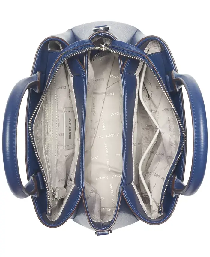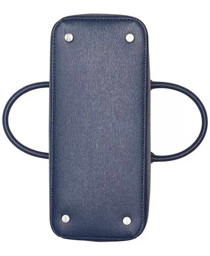 An everyday bag you'll want to carry, this roomy satchel is spacious enough to hold everything you need. Plus, its smooth leather finish and charm embellisModazoneents guarantee that this style won't get lost in the shuffle. Genuine leather Imported Zipper Closure Gold-tone hardware Textured leather triple entry satchel, dual rolled handles, optional shoulder strap 1 slip pocket, 1 zipper pocket Dual rolled handles, optional strap 5" handle, 21" strap 11.5"W x 8.5"H x 5.25"D 30.16 oz