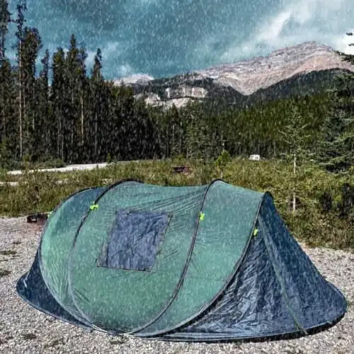 Водонепроницаемый материал обеспечивает сухость и безопасность даже в дождливую погоду. Просторный интерьер позволяет 4 людям разместиться с комфортом и организовать свои вещи.