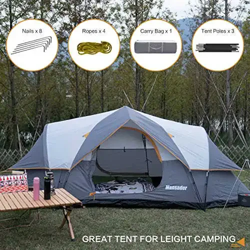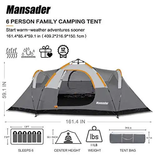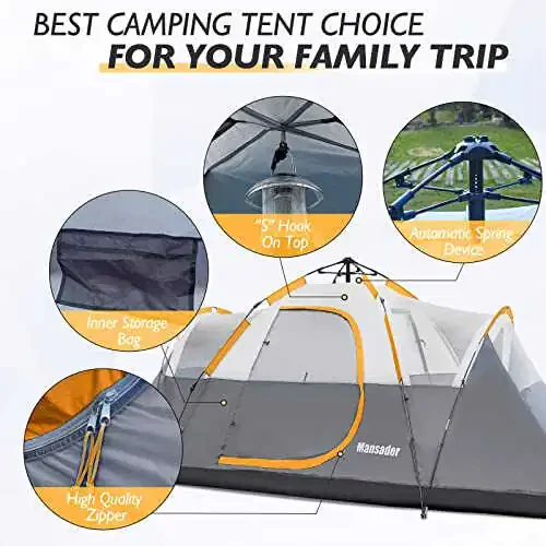 Семейная палатка для кемпинга Mansader на 6 человек - водонепроницаемая, ветрозащитная, простая в установке
