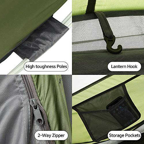 Изготовленная из водонепроницаемой полиэфирной ткани, палатка защитит вас от дождя. Две двери обеспечивают легкий вход и выход, а также способствуют вентиляции внутри палатки. Благодаря легкому и портативному дизайну ее можно легко поместить в рюкзак, чтобы взять с собой куда угодно.