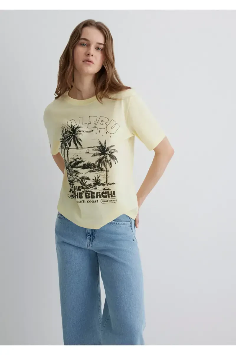 Palma naqshli sariq futbolka Regular Fit / Normal K Sifatli paxta matosidan ishlab chiqarilgan. Kundalik foydalanish uchun mos. Naqshli.