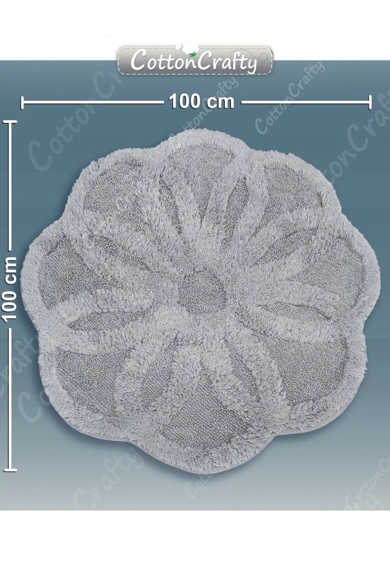 Pamuk Tafting Su Emici Banyo Paspası, Banyo Halısı Lotus 100 X 100 Cm Gri-Gri