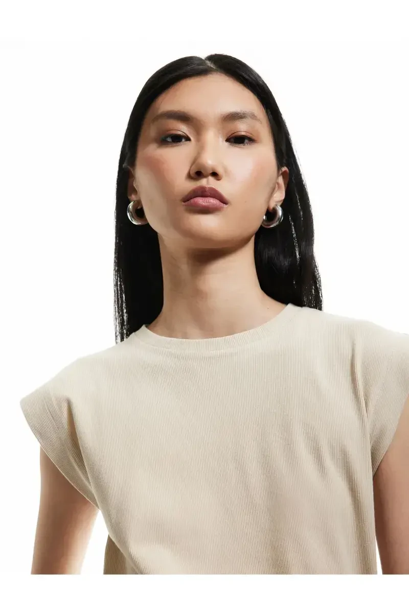 Pamuklu Bisiklet Yaka Kolsuz Basic Tişört ile tanışın! Bu tişört, sıcak yaz günlerinde serin kalmanızı sağlarken, şıklığınızdan da ödün vermemeniz için tasarlandı. %100 pamuk dokusu, cildinize nazikçe dokunur ve gün boyu rahatlık sunar. Bisiklet yaka detayı, tişörte modern bir hava katarken, kolsuz tasarımı hareket özgürlüğünüzü kısıtlamaz. Ekru rengi, zamansız bir şıklık sunar ve gardırobunuzdaki diğer parçalarla kolayca kombinlenebilir. İster günlük kullanımda, ister özel bir etkinlikte, bu tişört ile her zaman stil sahibi görünebilirsiniz. Pamuklu yapısı sayesinde terlemeyi önler ve cildinizin nefes almasını sağlar. Düz kesimi, vücuda oturan ancak sıkmayan yapısıyla her beden tipine uyum sağlar. Bu tişört, sadece bir giysi değil, aynı zamanda bir yaşam tarzı ifadesidir. Sade ve şık tasarımıyla dikkat çekerken, konforlu yapısıyla gün boyu keyifli bir kullanım sunar. Gardırobunuzun temel parçalarından biri olacak bu tişörtü, farklı aksesuarlar ve ayakkabılarla kombinleyerek kendi tarzınızı yansıtabilirsiniz. İster spor bir görünüm için şort ve sandaletlerle, ister daha şık bir kombin için etek ve topuklu ayakkabılarla tamamlayabilirsiniz. Pamuklu Bisiklet Yaka Kolsuz Basic Tişört, hem rahatlığı hem de şıklığı bir arada arayan kadınlar için ideal bir seçimdir. Bu tişört ile her ortamda kendinizi güvende ve şık hissedebilirsiniz. Üstelik, kolayca yıkanabilir ve ütülenebilir yapısıyla da size pratik bir kullanım sunar. Gardırobunuzun olmazsa olmazı olacak bu tişörtü hemen sepetinize ekleyin ve stilinizi bir üst seviyeye taşıyın!
